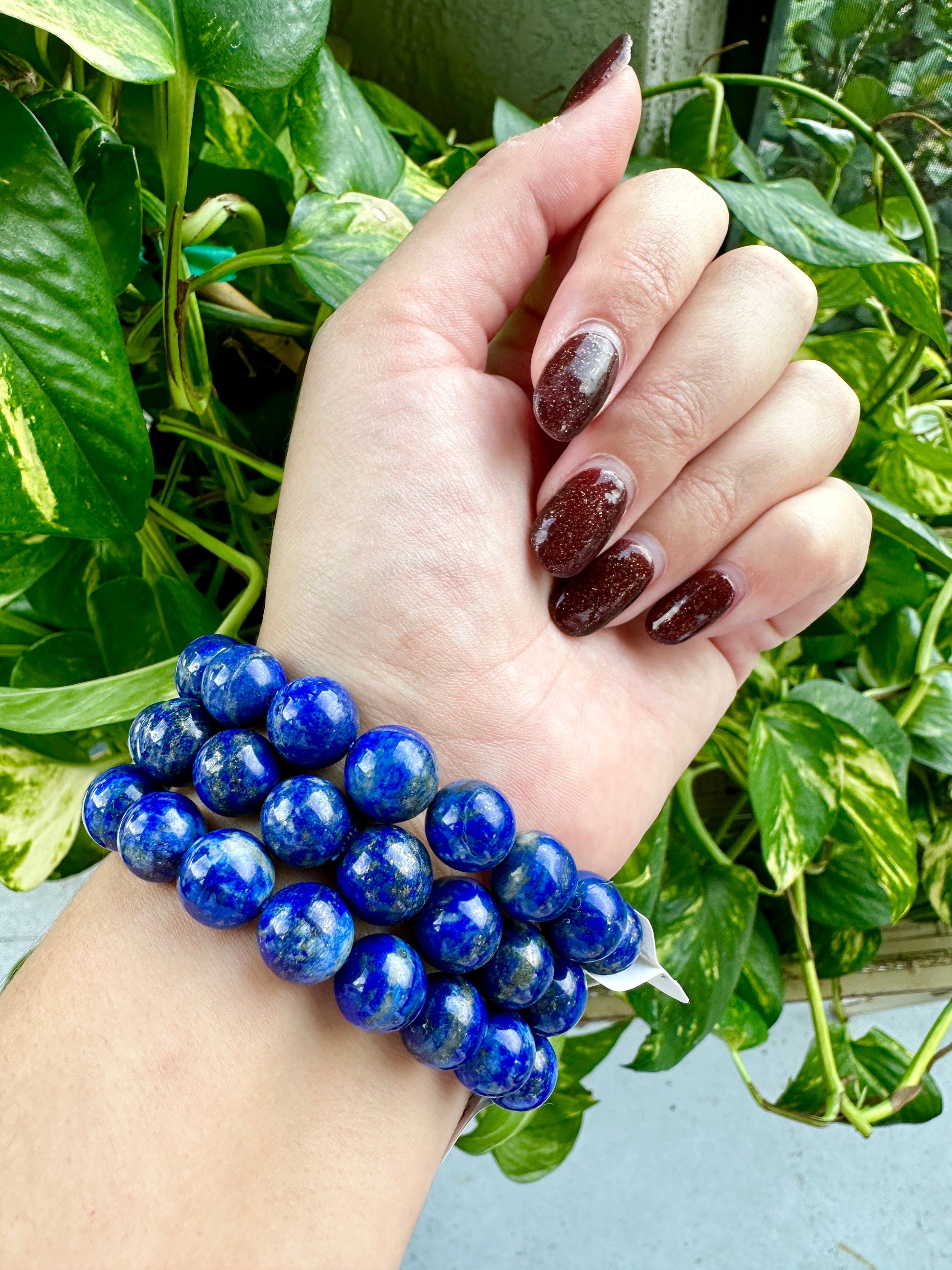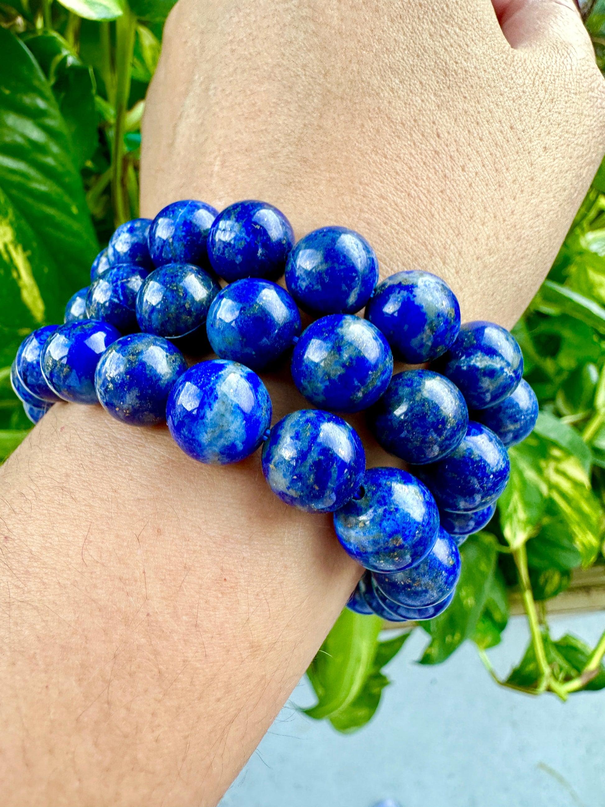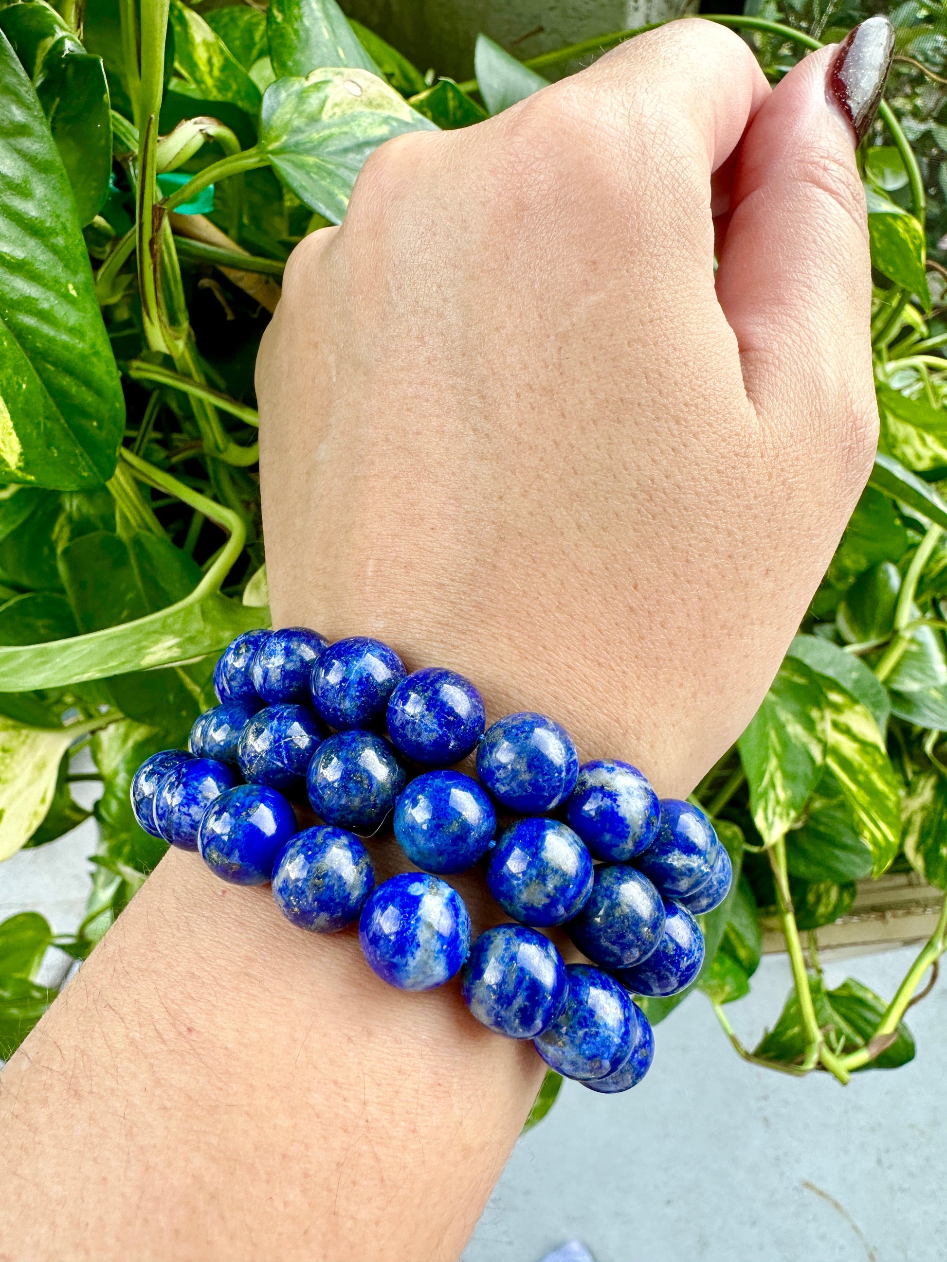 Elevate your accessory game with our Lapis Lazuli Bracelet, featuring majestic 11.3mm beads. This luxurious bracelet not only stands out with its deep blue hues and natural golden flecks but also embodies the essence of wisdom, truth, and spiritual enlightenment. A perfect blend of style and soulful energy, it's designed to connect you more deeply with your inner self and the universe. šāØ