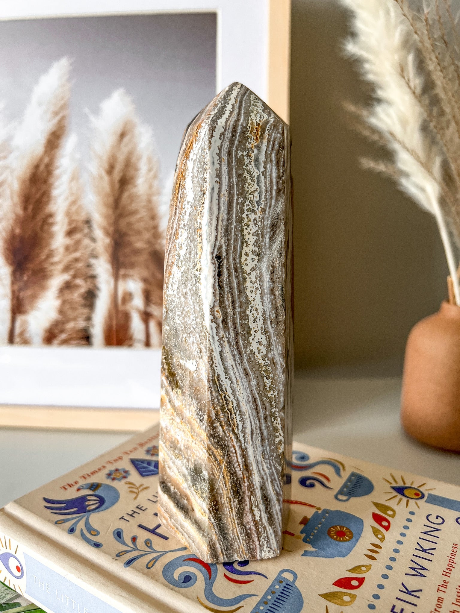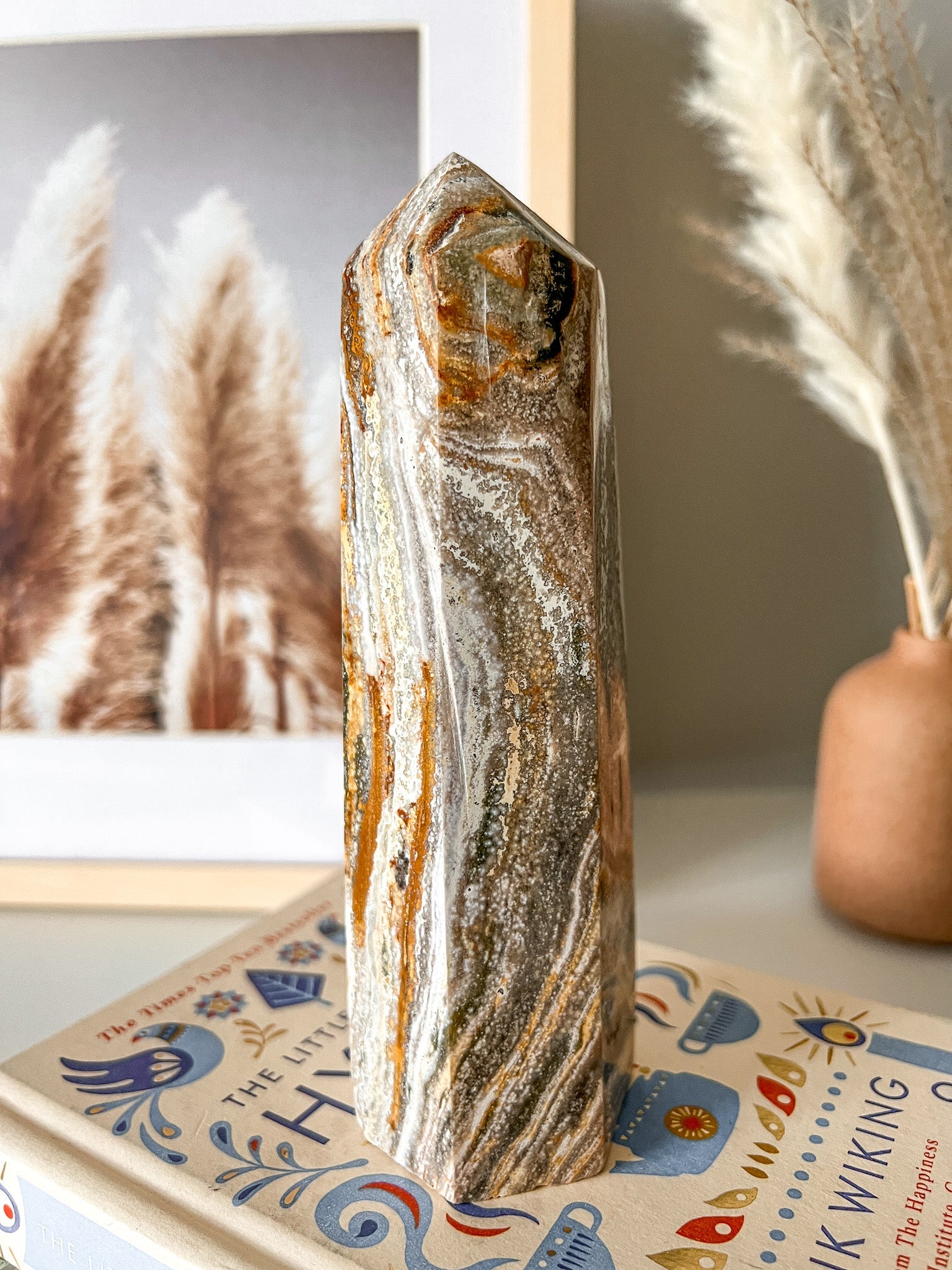 Ocean Jasper is known for its colourful patterns and only being found in Madagascar. It's excellent for soothing past sorrows by harnessing the cleansing and restorative powers of Mother Earth. Since it encompasses so many different colours, each colour is specific to a Chakra thus Ocean Jasper is an excellent crystal for tapping into all the Chakras.